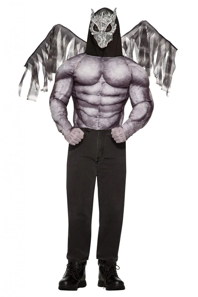 Included:Hood with Attached Mask, Wings and Muscle Shirt