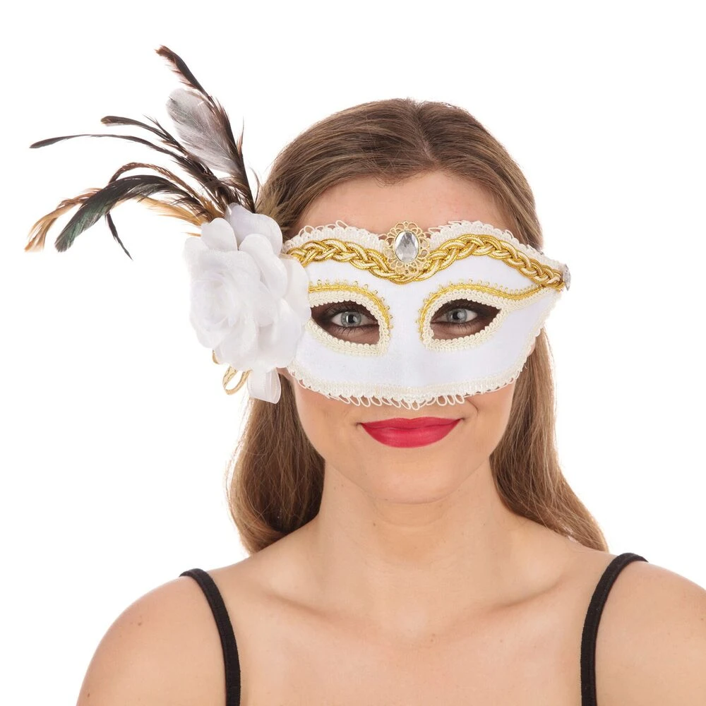 White With Side Feather & Flower Mask